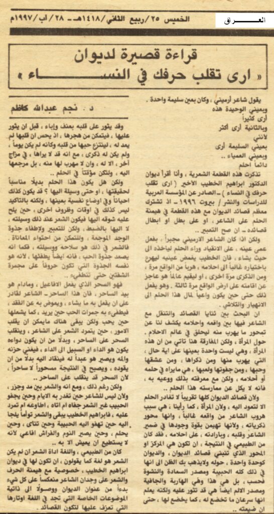 أرى تقلب حرفك في النساء 29 مايو، 2025 دراسات أخرى, دراسات الدكتور نجم عبدالله كاظم شاركها Facebook Twitter Stumbleupon LinkedIn Pinterest