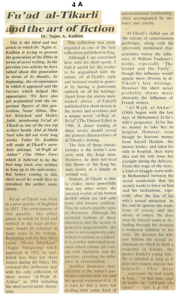 Fu’ad al-Tikarli and the art of fiction 30 مايو، 2025 دراسات أخرى, دراسات الدكتور نجم عبدالله كاظم شاركها Facebook Twitter Stumbleupon LinkedIn Pinterest